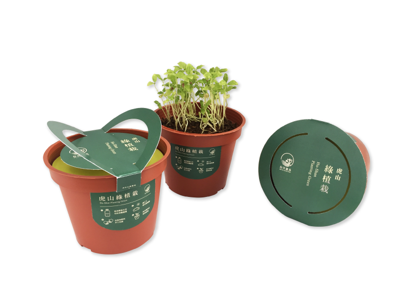 虎山綠植栽所使用的栽培土壤,是來自於當地香菇廢棄太空包中的培養基質,其成分可如泥土般儲蓄養分,並再次利用於植物培育,且重量僅為一般市售培養土的三分之一、排水性及透氣性佳,在包裝前還需經過人工紫外線殺菌,後再進行手工包裝程序,所採用的原物料、工法皆來自虎山社區,大眾在購入盆栽的同時,也為社區減少負擔、帶來生機。